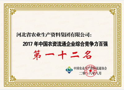集團公司榮獲中國農資流通企業(yè)綜合競爭力百強、中國農資行業(yè)知名品牌